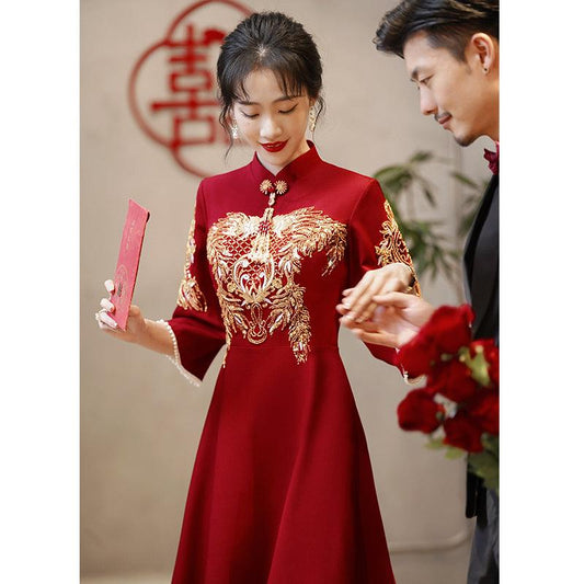 Customizable Wine Red Tea Ceremony Wedding Qipao