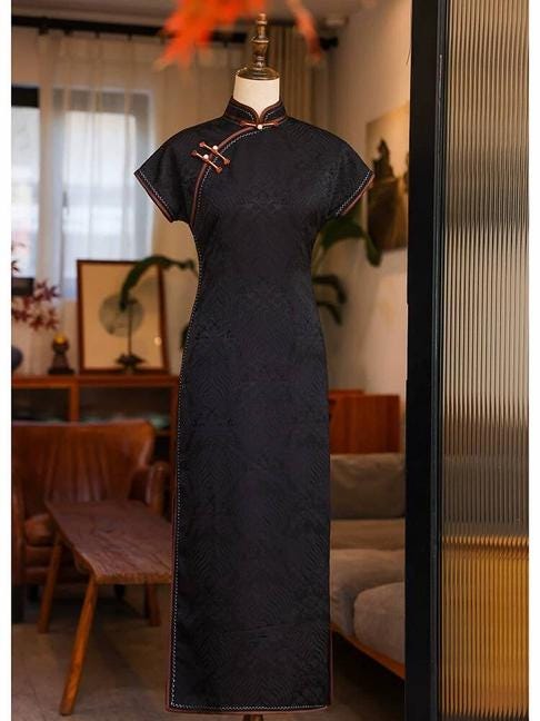 Daily Modern Qipao, Black Summer Qipao with Jacquard