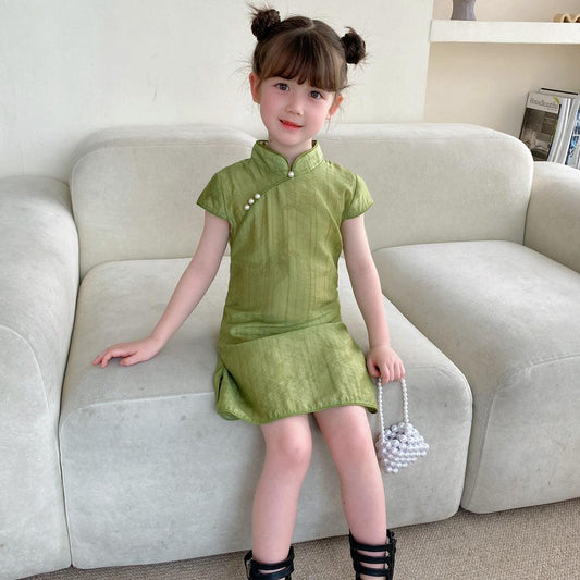 Girl's Green Qipao Summer Cheongsam