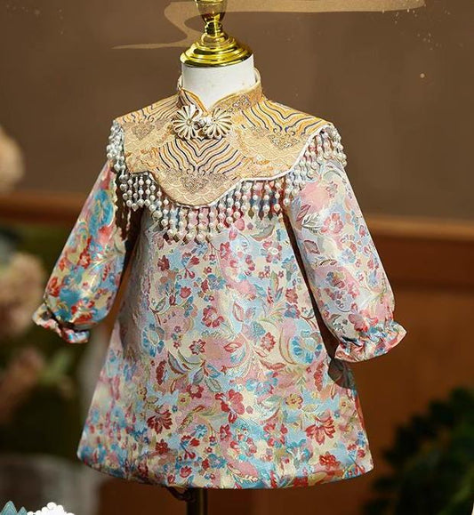 Girl's and Baby girl's first birthday Qipao long-sleeve princess