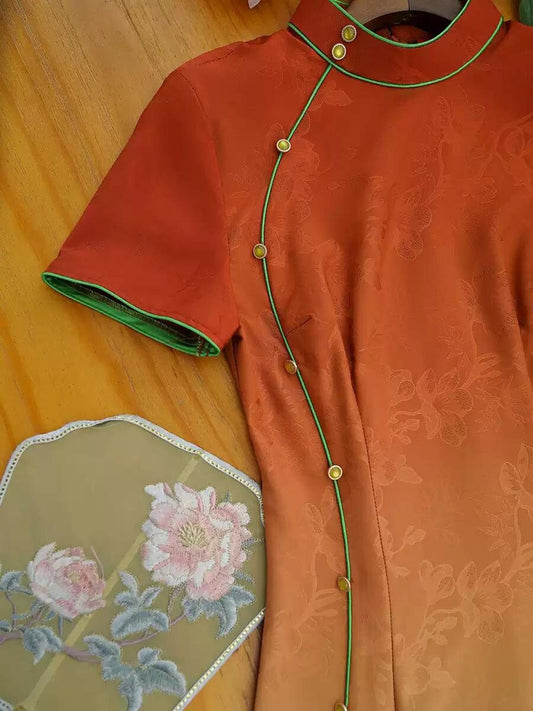 Gradient Color New Design Qipao Cheongsam, Summer Chinese Dress, Modern long length Daily Wear Party Dress Simple Dinner Dress