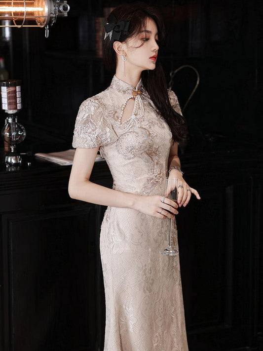 Gray Mermaid Dress Chinese-Style Wedding Cheongsam