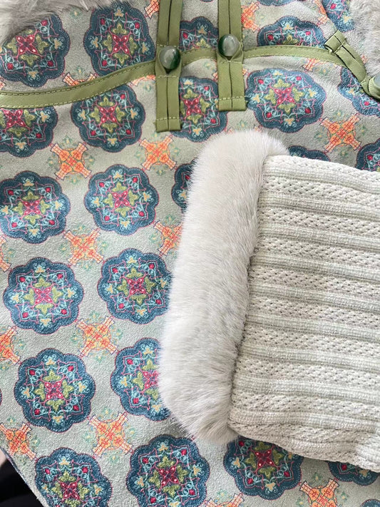 Handcrafted Silk Velvet Floral Earrings - Blue & Pink Classic Chinese Style