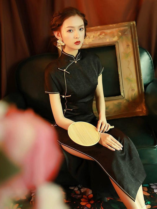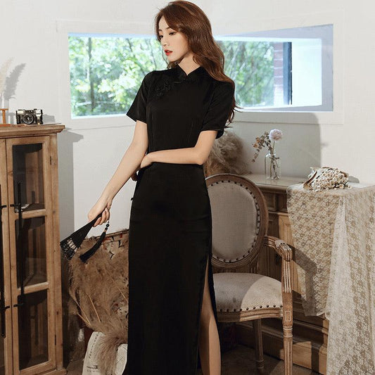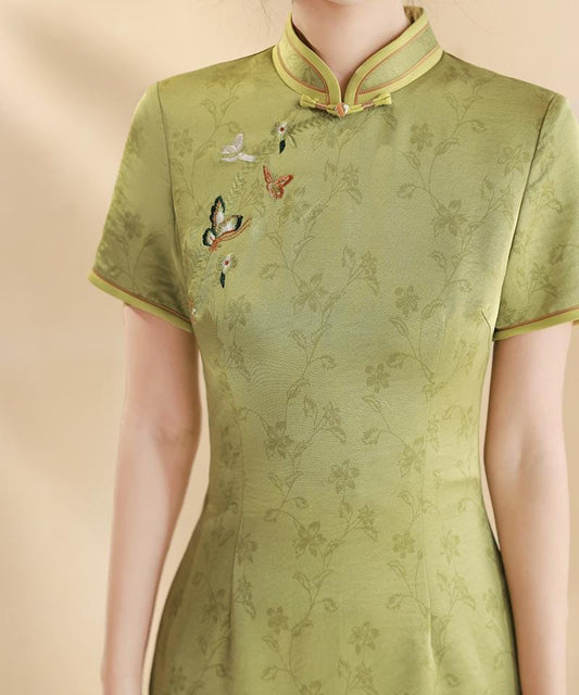 Green Silk-like Long Cheongsam Modern Chinese Qipao