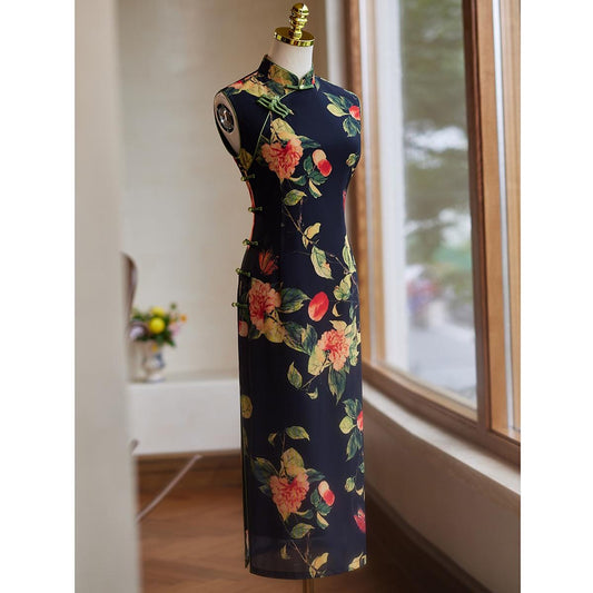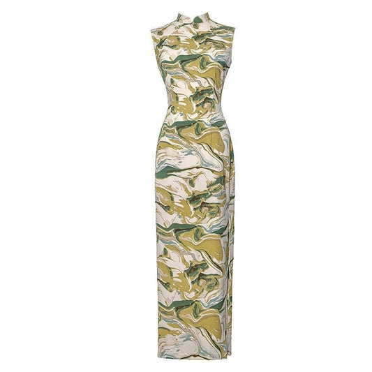 Green Sleeveless Cheongsam with Floral Chinese Qipao