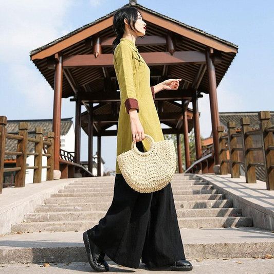 Linen and Cotton Dress Frog Button