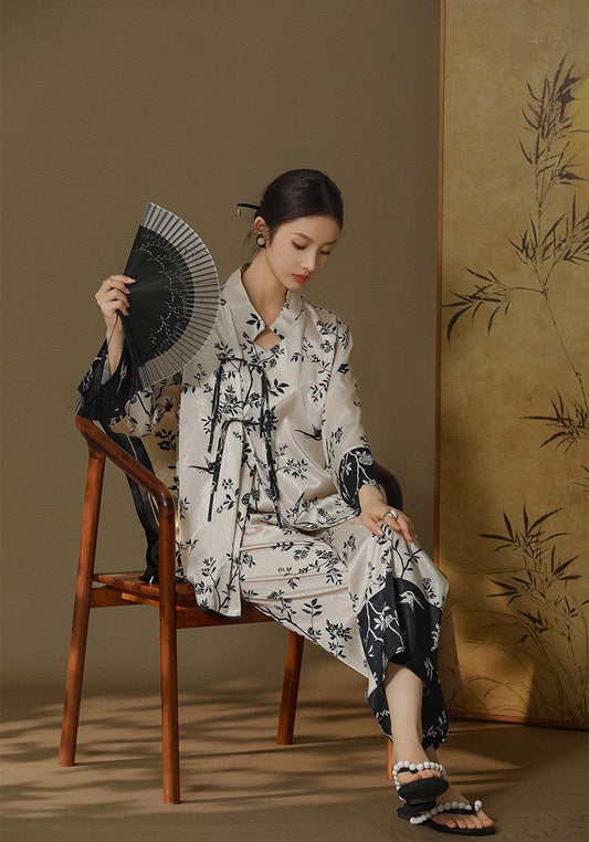 New Chinese Style Pajama Set Faux Silk Pajamas