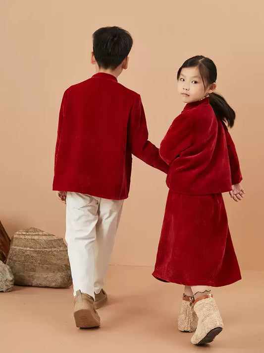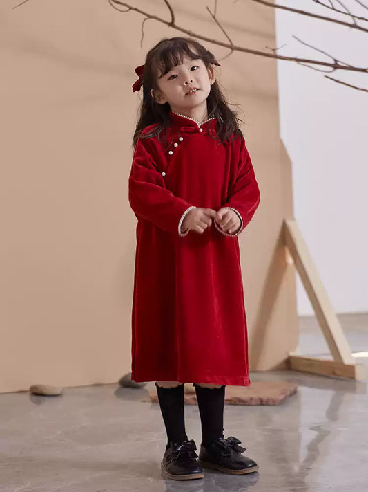 Outfits for Kids Chinese New Year Velvet Qipao and Tang Suit for Christmas