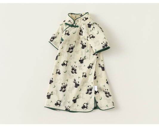 Panda Pattern Baby Children's Dress, Chinese Vintage Qipao for Little Girls