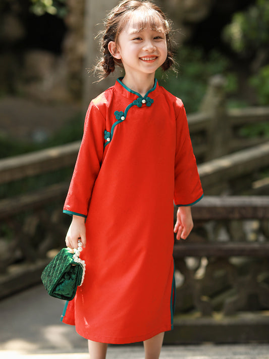 Orange Red Cheongsam For Girl