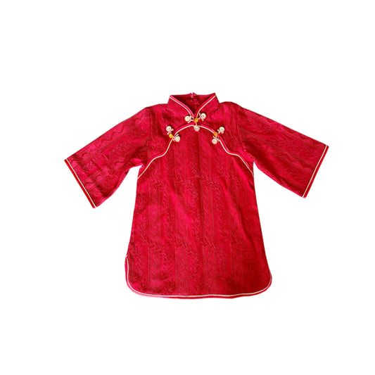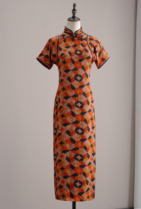 Red Modern Mulberry Silk Short-sleeved long Cheongsam Qipao