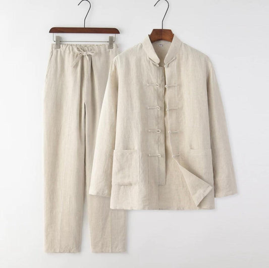 Six Color Men's linen cotton Chinese-style suit Tang set