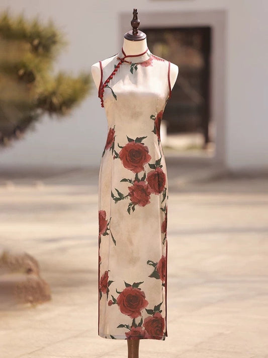 -14% OFFRose Pattern Sleeveless Qipao