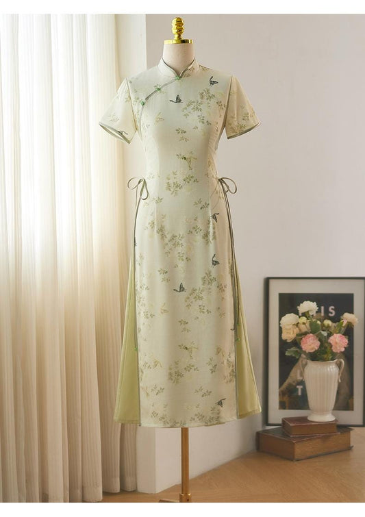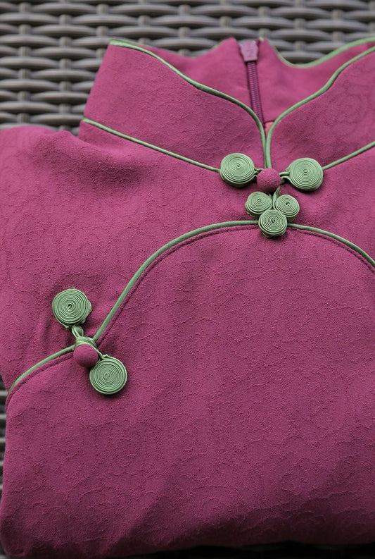 Short Sleeve Qipao, Date Qipao Elegant dress with jade buttons