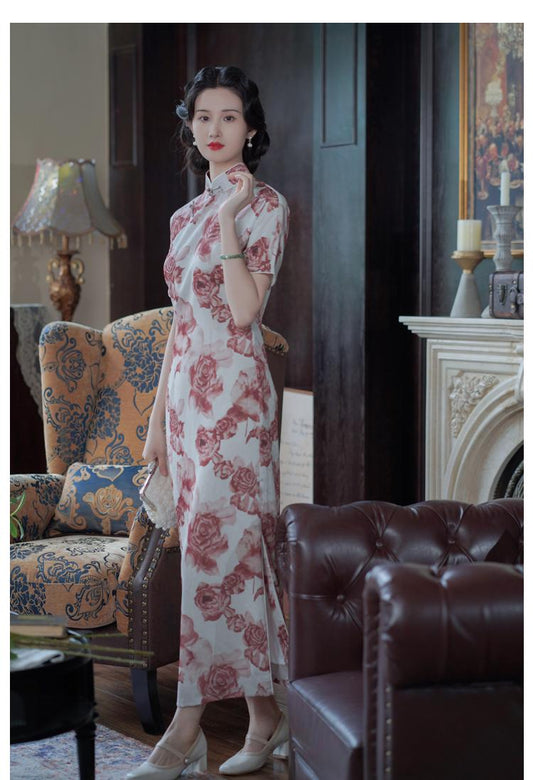 Rose Floral Handcrafted Qipao, Tridational Engagement Cheongsam