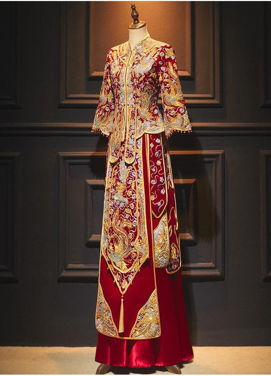 Traditional Chinese Bridegroom Red Wedding Xiuhe Dragon and Phoenix Diamond Tea Ceremony