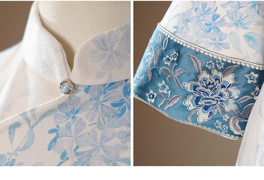 The Old Shanghai Style Cheongsam Chiffon Qipao Dress