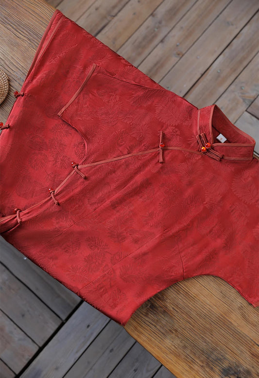 Traditional Brick red Cheongsam, Side Open Chinese Qipao