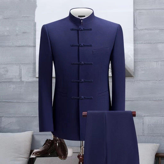 Two Color Blue&Black Men's Cheongsam Tang Suit