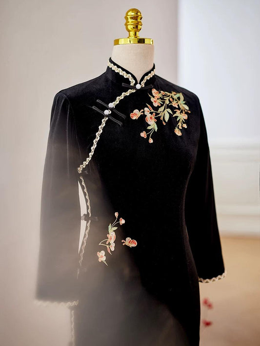 Traditional Qipao Cheongsam, Black Chinese Dress