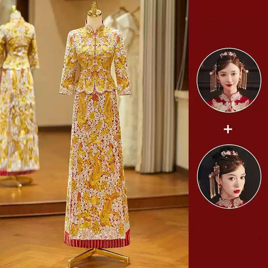 Traditional Chinese Bridegroom Yellow and Red Wedding Xiuhe