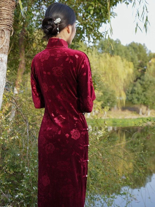 Velvet Fall Chinese Qipao Dress Cheongsam Traditional Chinese
