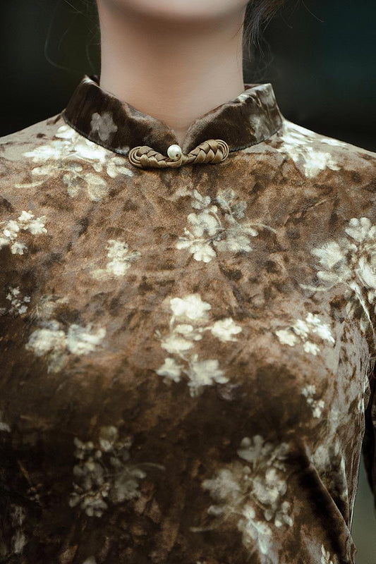 Velvet Floral Pattern Daily Qipao Mermaid Dress Traditional Daily