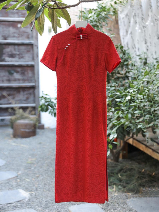 Chinese Red Cheongsam, Modern Chinese Qipao, Jacquard Qipao