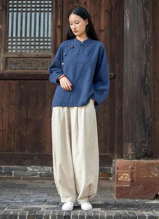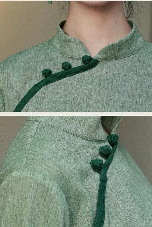 Ramie and Cotton Blouse Chinese Cheongsam Top