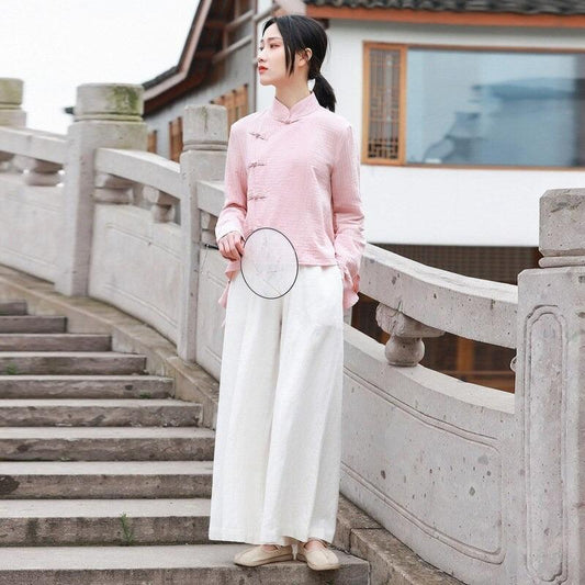 Linen Cotton Pink Qipao Blouse