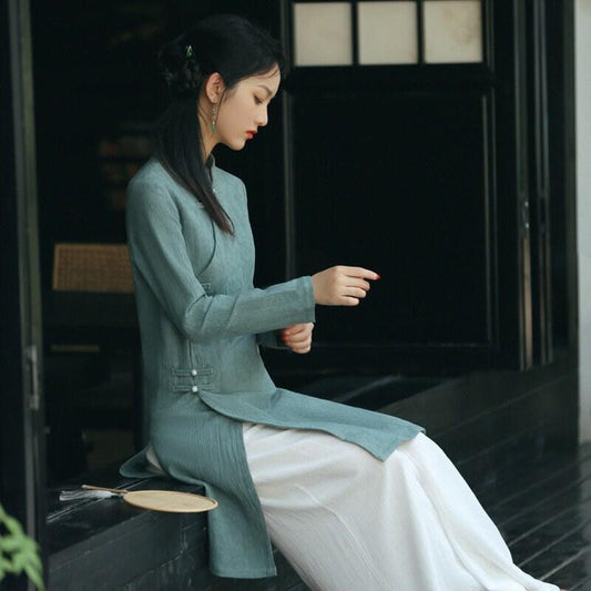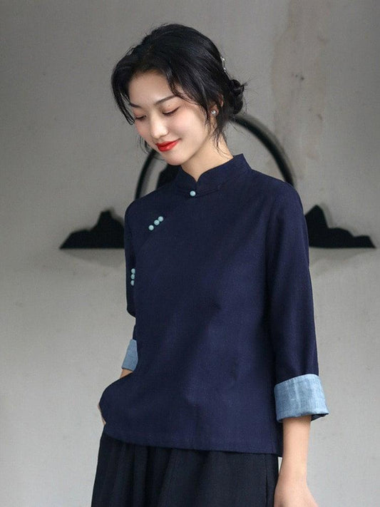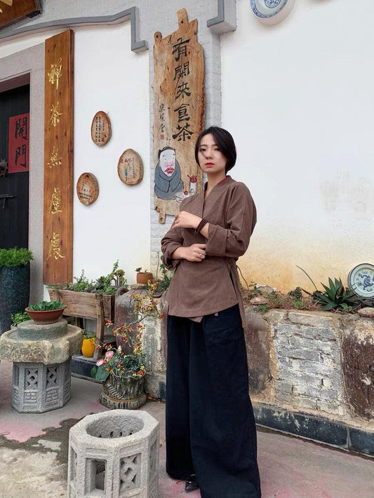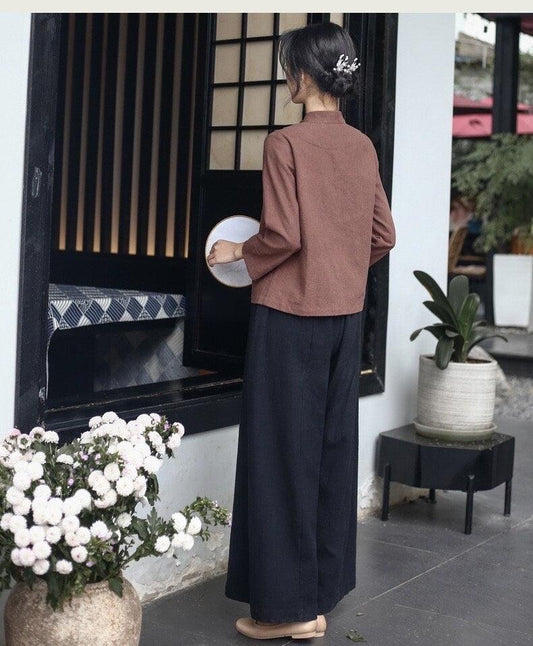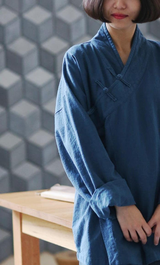Cotton Linen Blouse Chinese Hanfu Oversize Shirt
