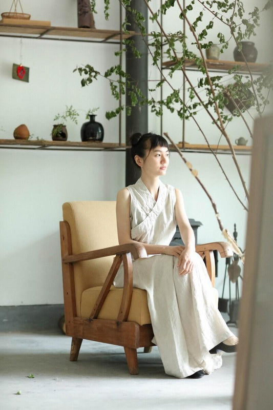 Chinese Hanfu Dress Linen Cotton Dress Maxi Linen Dress