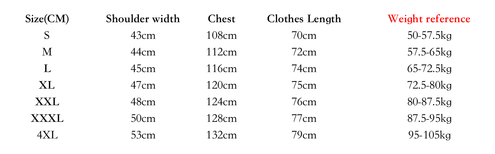 Please note that our size chart is based on the measurements of the clothes, not your body. For men's clothes, We recommend that you find one of your suit tops to measure. Or choose the size based on height and weight.