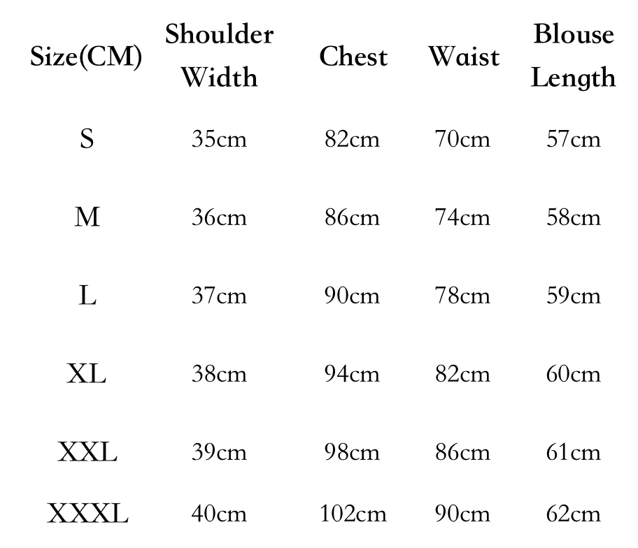 Please note that our size chart is based on the measurements of the clothes, not your body. We recommend choosing a size slightly larger (approximately 2-3cm) than your actual body size for a comfortable fit.
