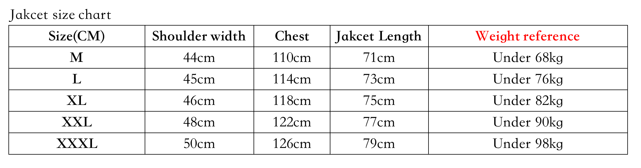 Please note that our size chart is based on the measurements of the clothes, not your body. For men's clothes, We recommend that you find one of your suit tops to measure. Or choose the size based on height and weight.