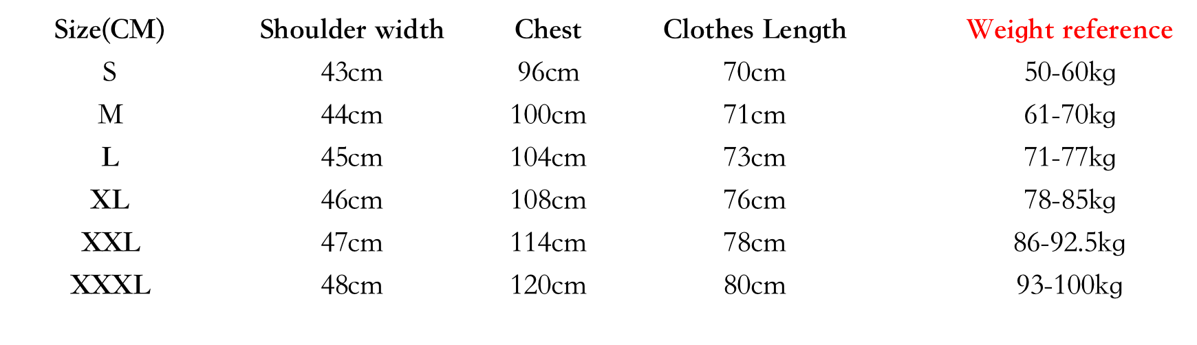 Please note that our size chart is based on the measurements of the clothes, not your body. For men's clothes, We recommend that you find one of your suit tops to measure. Or choose the size based on height and weight.