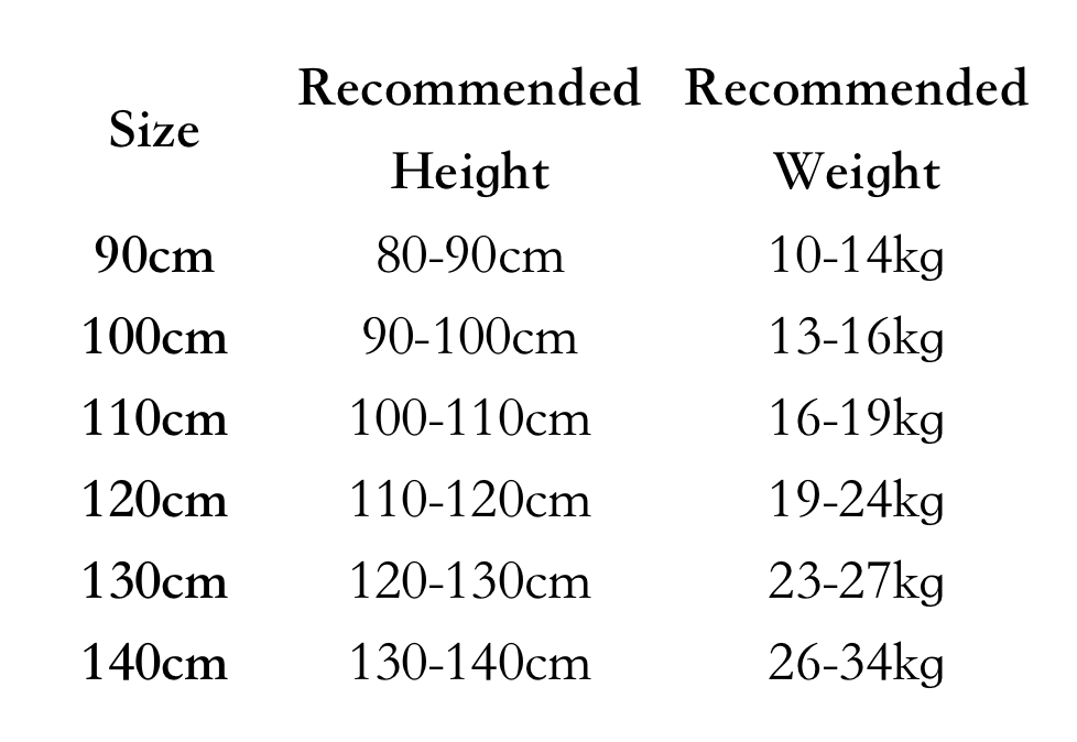 For children's clothing, we recommend selecting based on the child's height and weight. Our size is the height measurements, If the child is a little bit "chubbier" or heavier than typical for their age, the advice is to go up one size larger to ensure a comfortable, flattering fit.