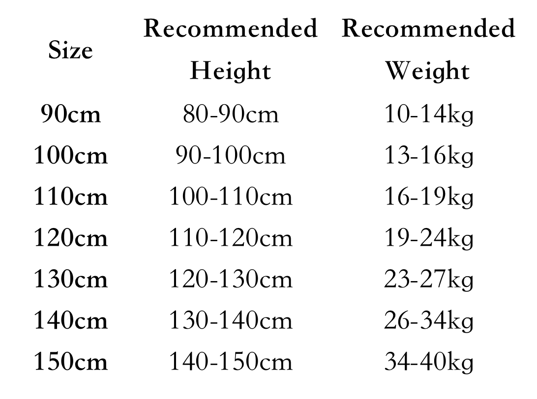 For children's clothing, we recommend selecting based on the child's height and weight. Our size is the height measurements, If the child is a little bit "chubbier" or heavier than typical for their age, the advice is to go up one size larger to ensure a comfortable, flattering fit.