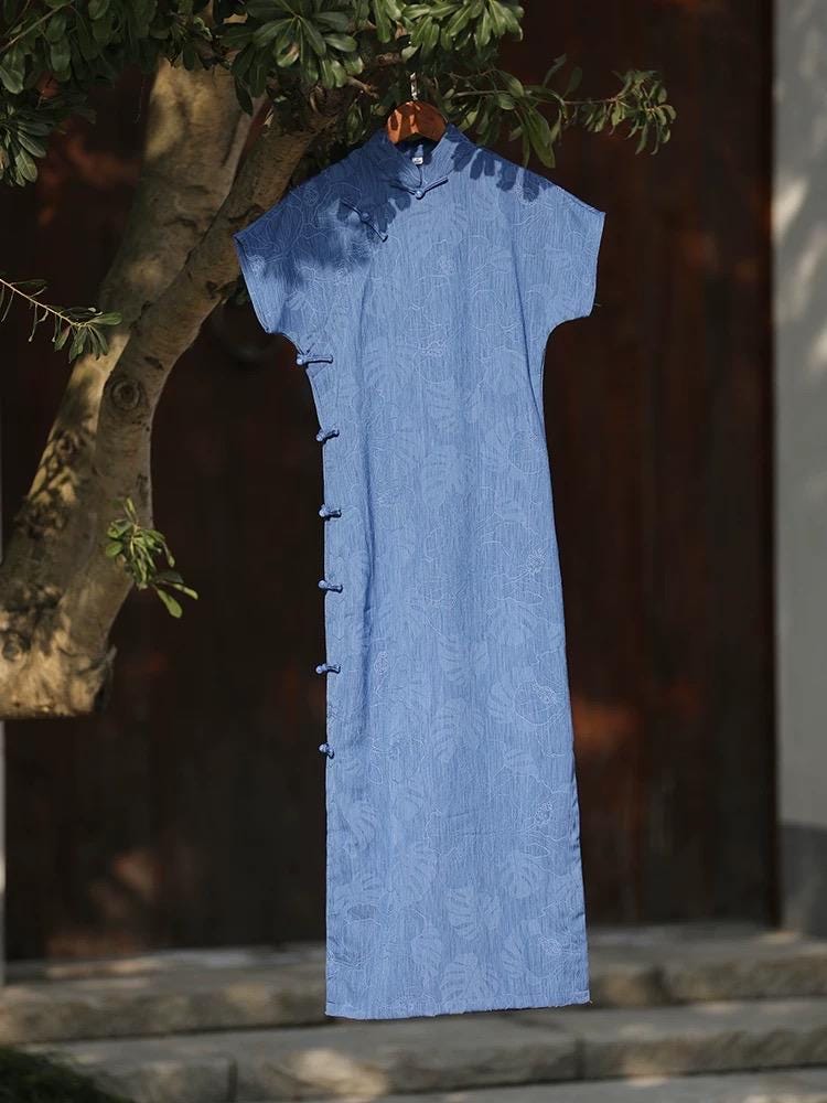 Blue Cheongsam, Summer Chinese Qipao, Daily Wear, Party Dress